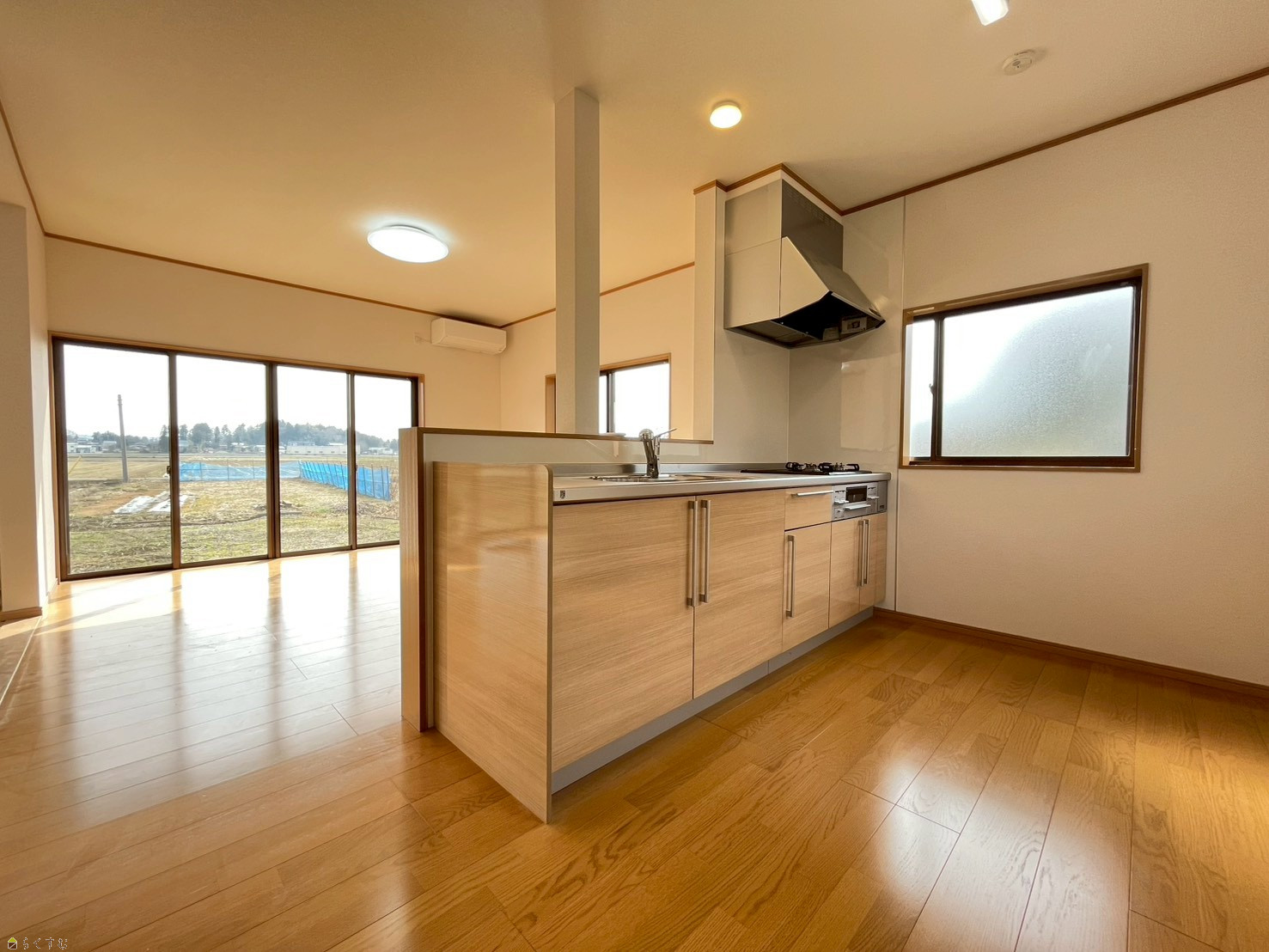 キッチン背面に家電置場・コンセント設置し、一部窓ガラス交換済